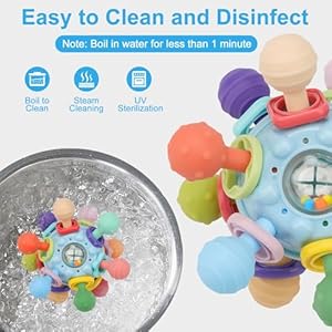 Silicone Baby Teether: This baby teether is made of high quality soft silicone and ABS plastic, which helps relieve gum pain and ensures the safety of your teething baby, great teething toys for babies 0-6 6-12 months