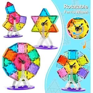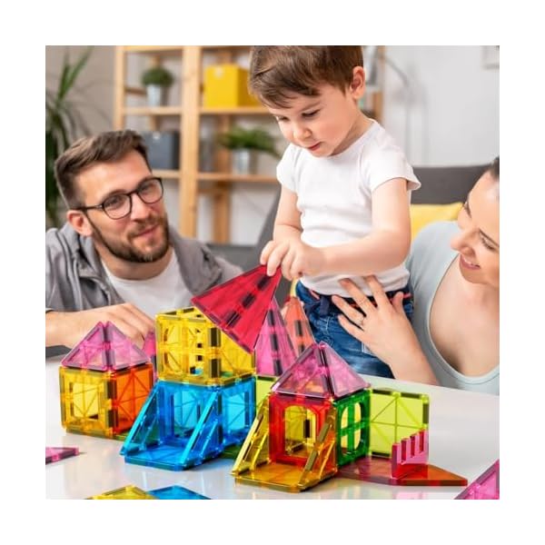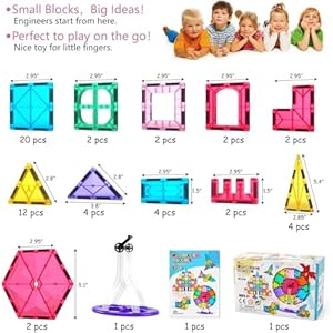 Educational STEM toys — Learning By Playing — By playing this magnetic building tiles, children can acquire strong sense of color, geometrical shapes including 3D forms numbers counts, magnetic polarities & architectural design at early age. Perfect educational presents for kids boys girls 3 4 5 6 7 8 9 10 11 12 years old