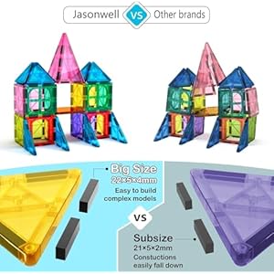 Safe, Durable & Stronger Magnet — The magnets blocks are made of high quality original ABS material, built with round edges for safety and smooth hand-feeling.Ultrasonic welding process and over 3000 anti-throw tests to prevent it from breaking apart. Larger & stronger magnet than other brands